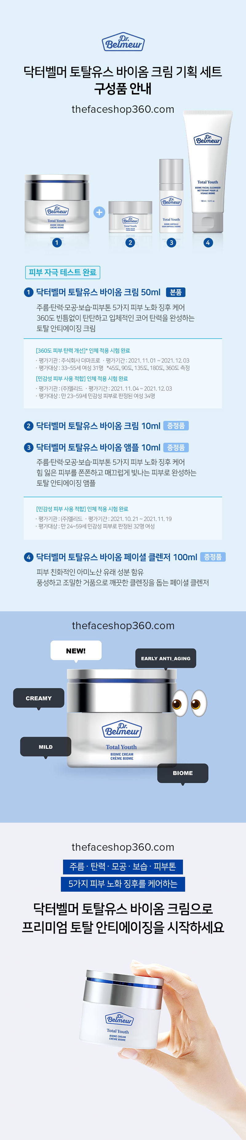 Bộ dưỡng trắng và trẻ hóa da toàn diện Dr. Belmeur Total Youth Biome Cream Special Set The Face Shop (4 sản phẩm)