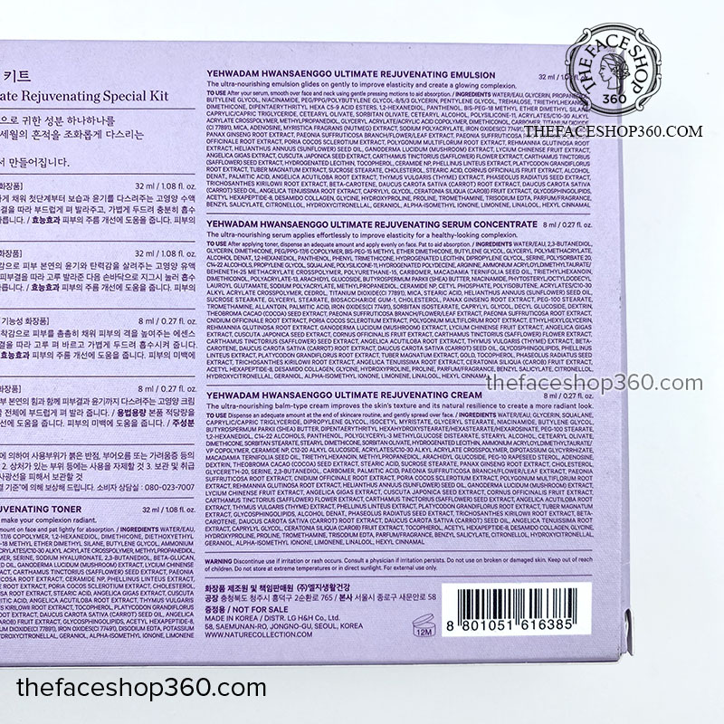 Thành phần Yehwadam Hwansaenggo Ultimate Rejuvenating Skincare Kit