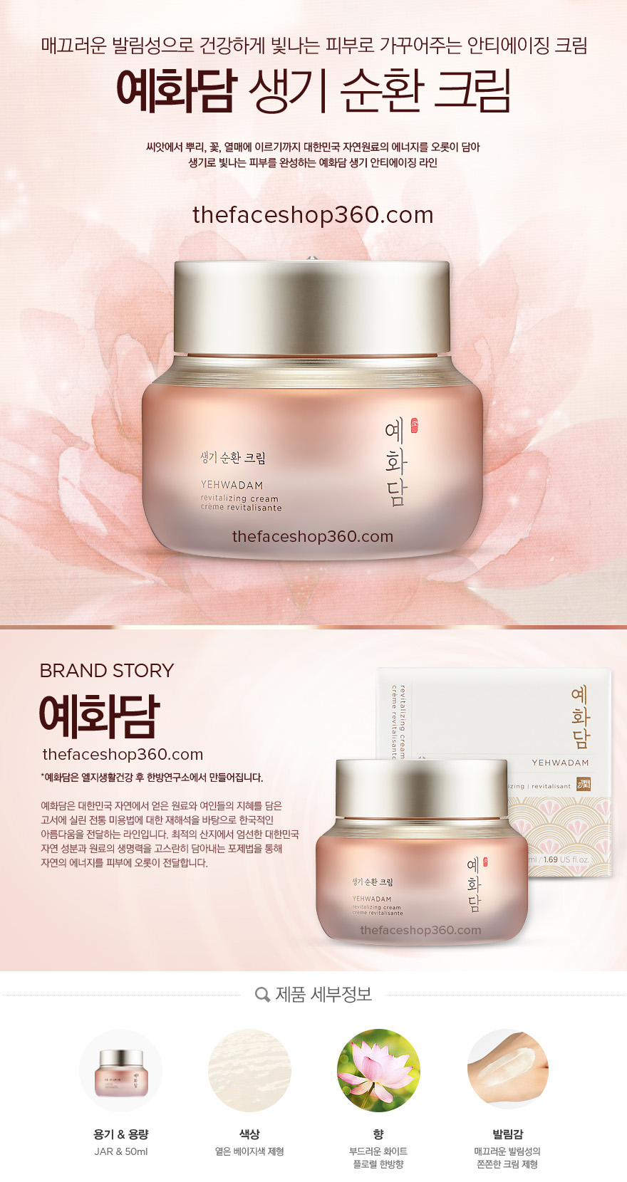 Yehwadam Revitalizing Cream là món quà The Face Shop dành cho các cô gái yêu thích sử dụng sản phẩm chiết xuất từ Đông Y và phong cách dưỡng da truyền thống. YEHWADAM REVITALIZING sẽ mang đến hiệu quả cực cao về việc cải thiện nếp nhăn cũng như nuôi dưỡng làn da. Giúp làn da thiếu độ ẩm và lão hóa sớm trở nên căng mướt, tươi sáng hơn mỗi ngày.
