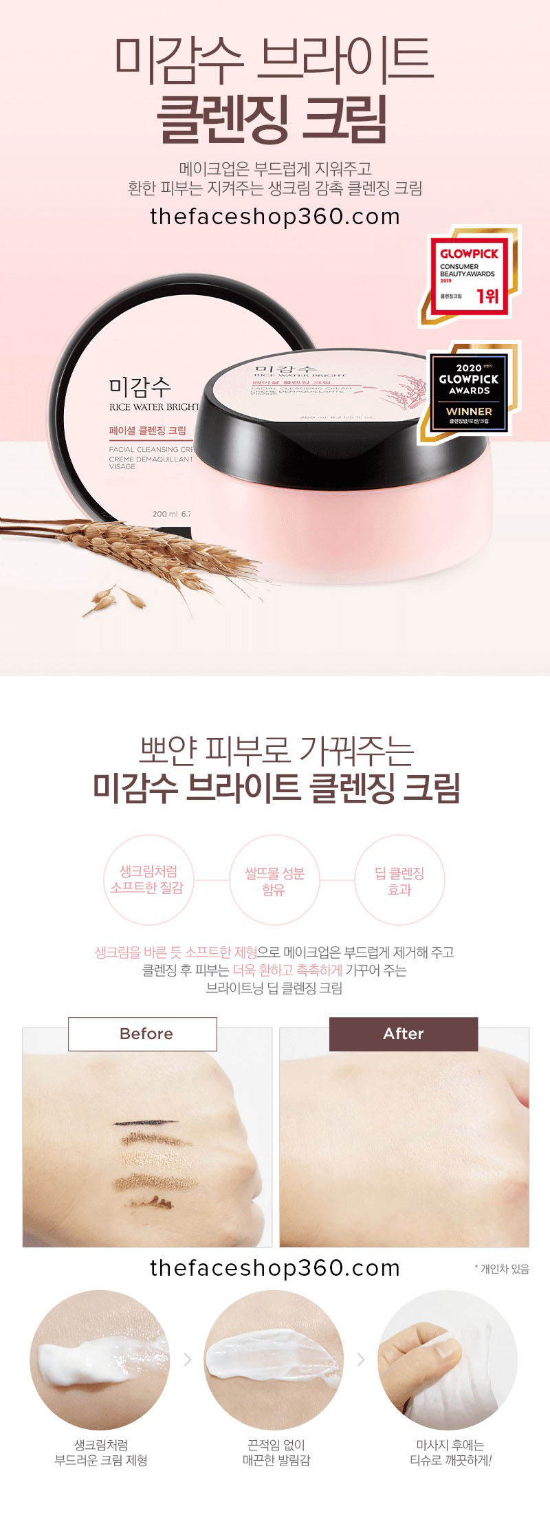 Rice Water Bright Cleansing Cream The Face Shop loại bỏ bã nhờn rất hiệu quả hiệu quả. Cung cấp độ ẩm cho da, mang lại cho bạn làn da mềm mịn và dễ chịu.