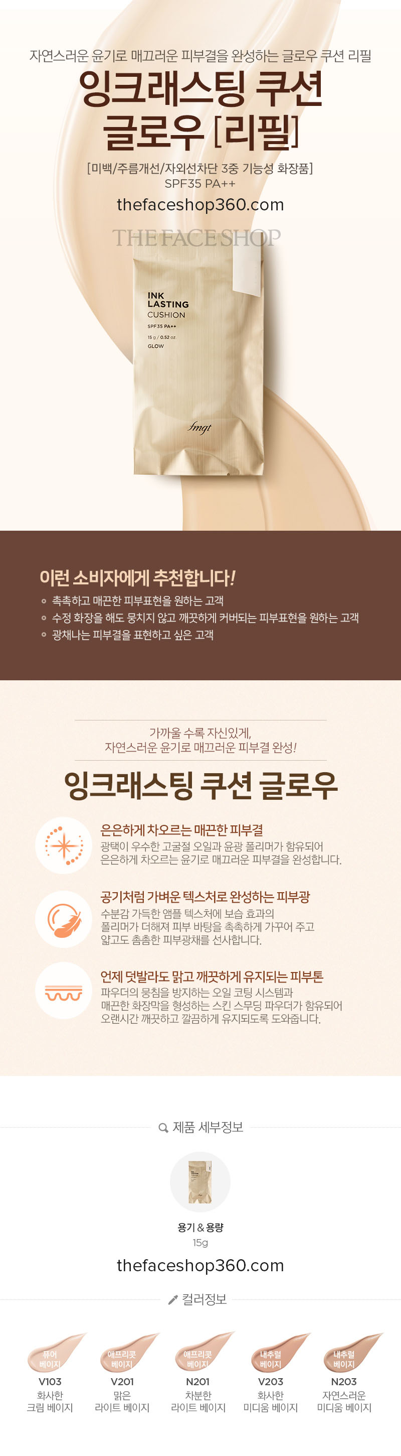 Lõi phấn nước lâu trôi hiệu ứng căng bóng Ink Lasting Cushion Glow Refill fmgt The Face Shop