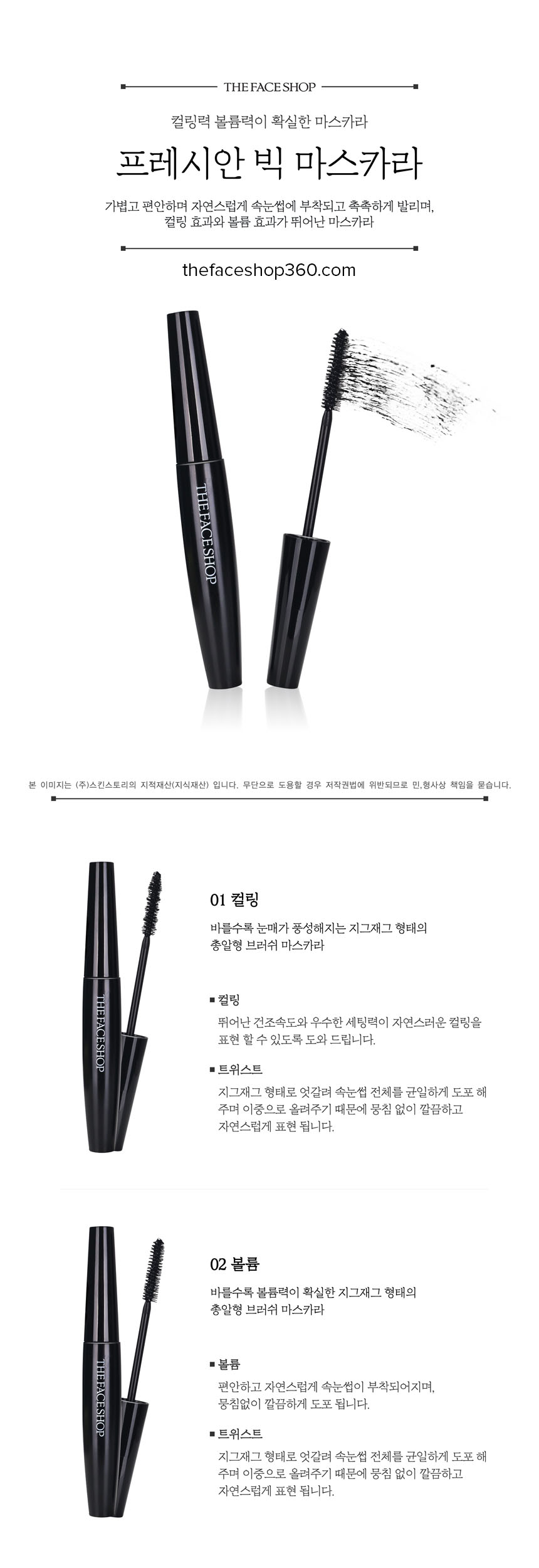 Mascara Freshian Big The Face Shop có thành phần giữ ẩm cho mi nên sản phẩm không bị khô cứng lại trong cả ngày dài. Đem lại cho bạn cảm giác mềm mại nhưng vẫn giữ được độ cong hoàn hảo cho hàng mi. Cực mau khô nên bạn sẽ hoàn toàn yên tâm vì nó không làm lem sản phẩm. Sản phẩm cũng giúp cho làn mi bạn khoẻ mạnh hơn, dễ tẩy trang, dễ lau khi trang điểm chưa vừa ý.