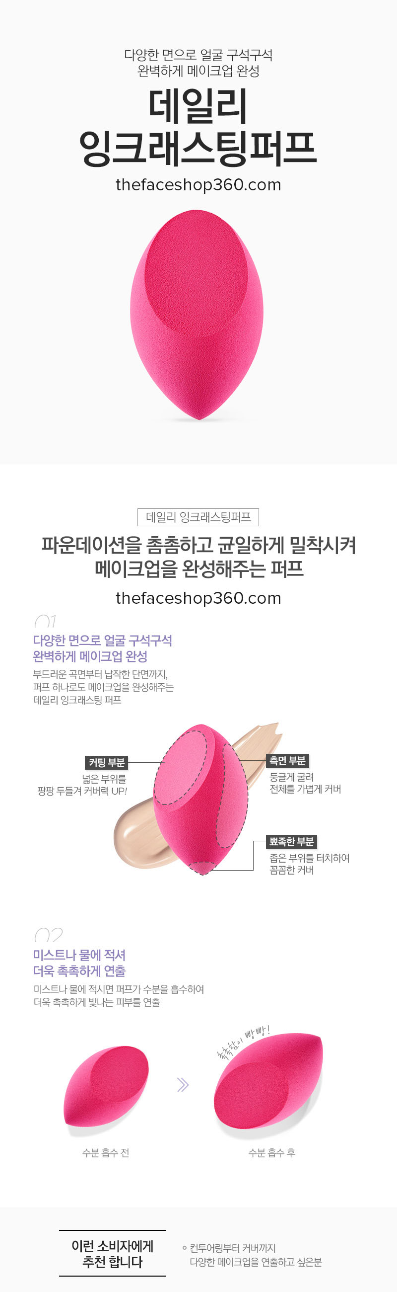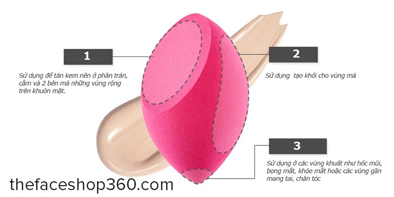 - Tùy vào vị trí trên gương mặt mà có thể sử dụng những phần khác nhau của bông mút.