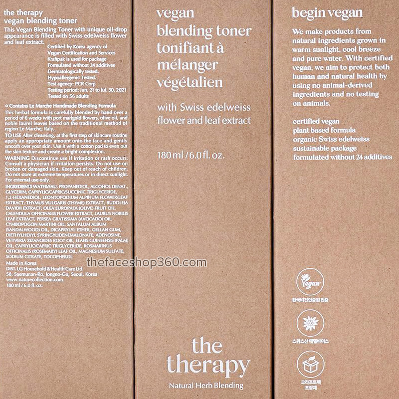 Nước cân bằng thuần chay The Therapy Vegan Blending Toner The Face Shop (180ml)