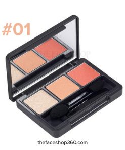 Hộp phấn 3 màu hiện đại, hài hòa, kèm 2 cọ nhỏ cho bạn tiện sử dụng.