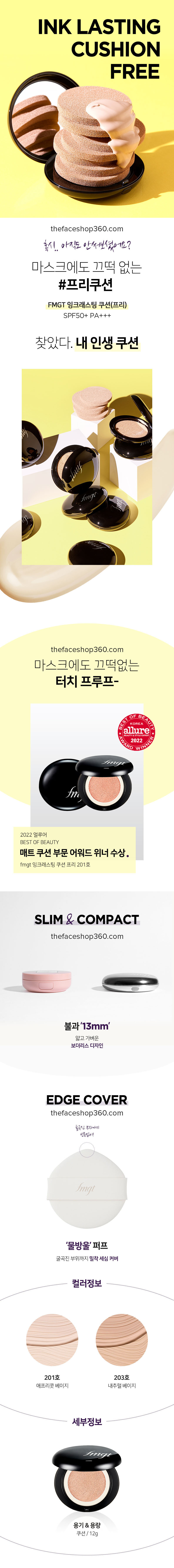 Phấn nước thuần chay lâu trôi Ink Lasting Cushion Free Vegan fmgt The Face Shop là một trong những cushion đã đạt giải Allure Best of Beauty năm 2022, Allure Awards là giải thưởng danh giá do tạp chí hàng đầu Thế Giới Allure bình chọn.