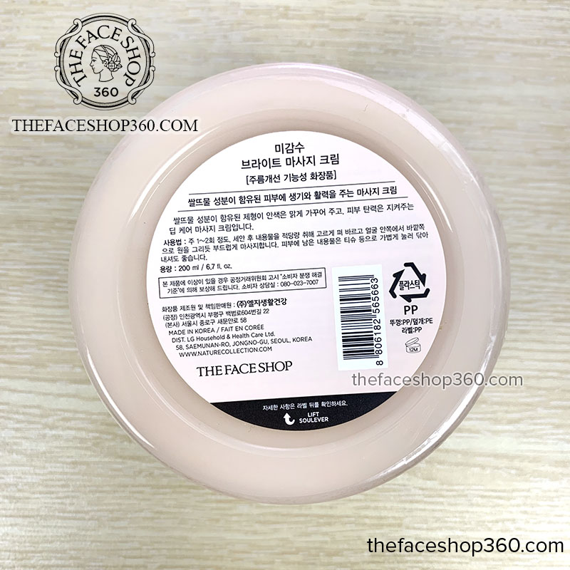 Kem Massage làm sáng da Rice Water Bright Facial Massage Cream The Face Shop ( 200ml)