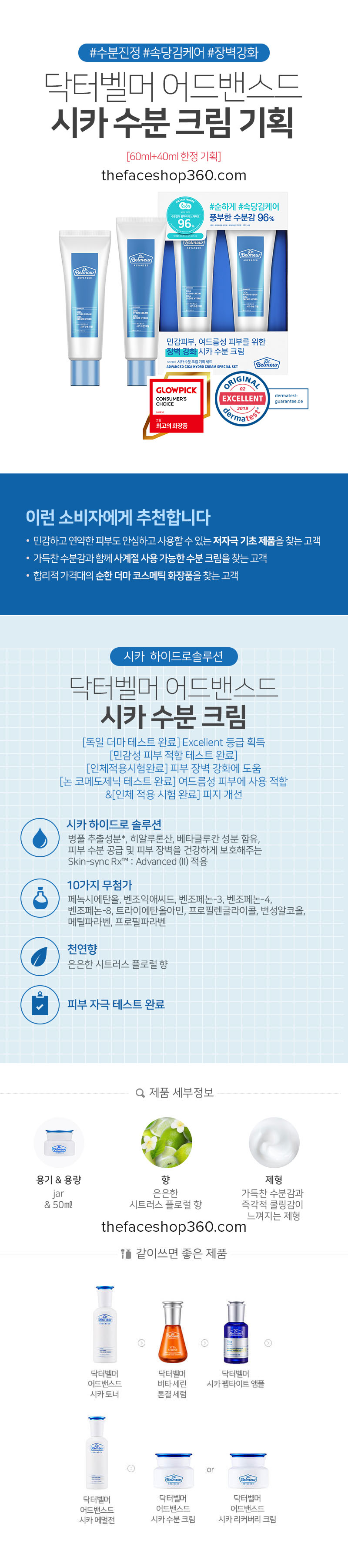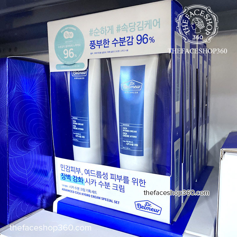 Dr.Belmeur Advanced Cica là dòng sản phẩm dưỡng ẩm kết hợp phục hồi tổn thương da thiếu ẩm của The Face Shop. Với các thành phần chính từ Hyaluronic acid, chiết xuất Rau má và công thức dưỡng ẩm độc quyền Skin-sync Rx ™, kem dưỡng Dr.Belmeur Advanced Cica mang lại hiệu quả dưỡng ẩm vượt trội, làm dịu da kích ứng và tăng độ săn chắc cho làn da luôn mịn màng rạng rỡ.