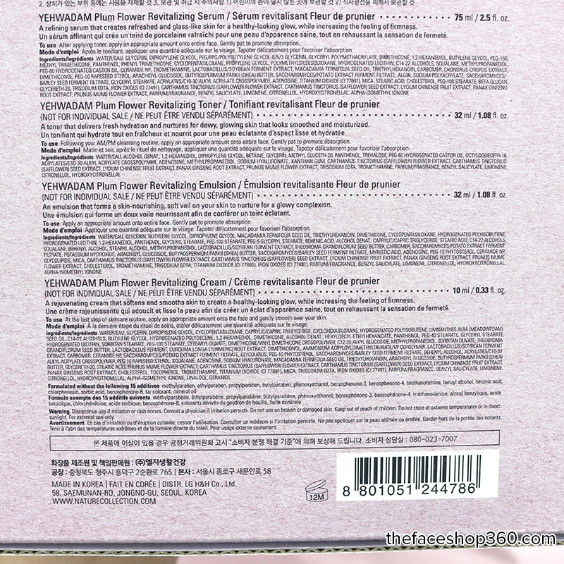 Thành phần Yehwadam Plum Flower Revitalizing Serum Special Set